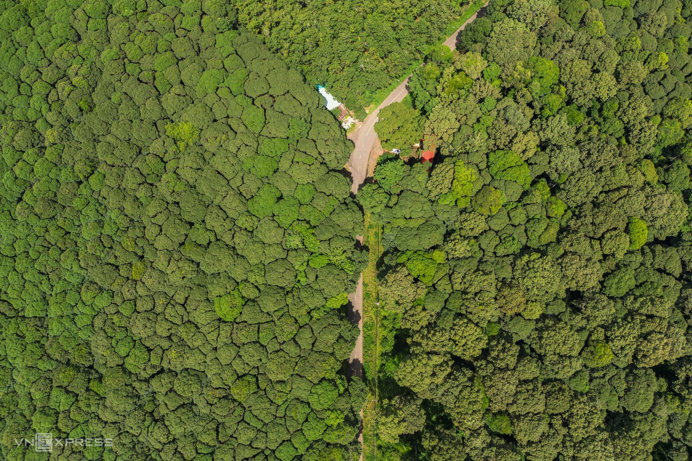 Một đoạn đường chạy dọc khu rừng rợp bóng cây.