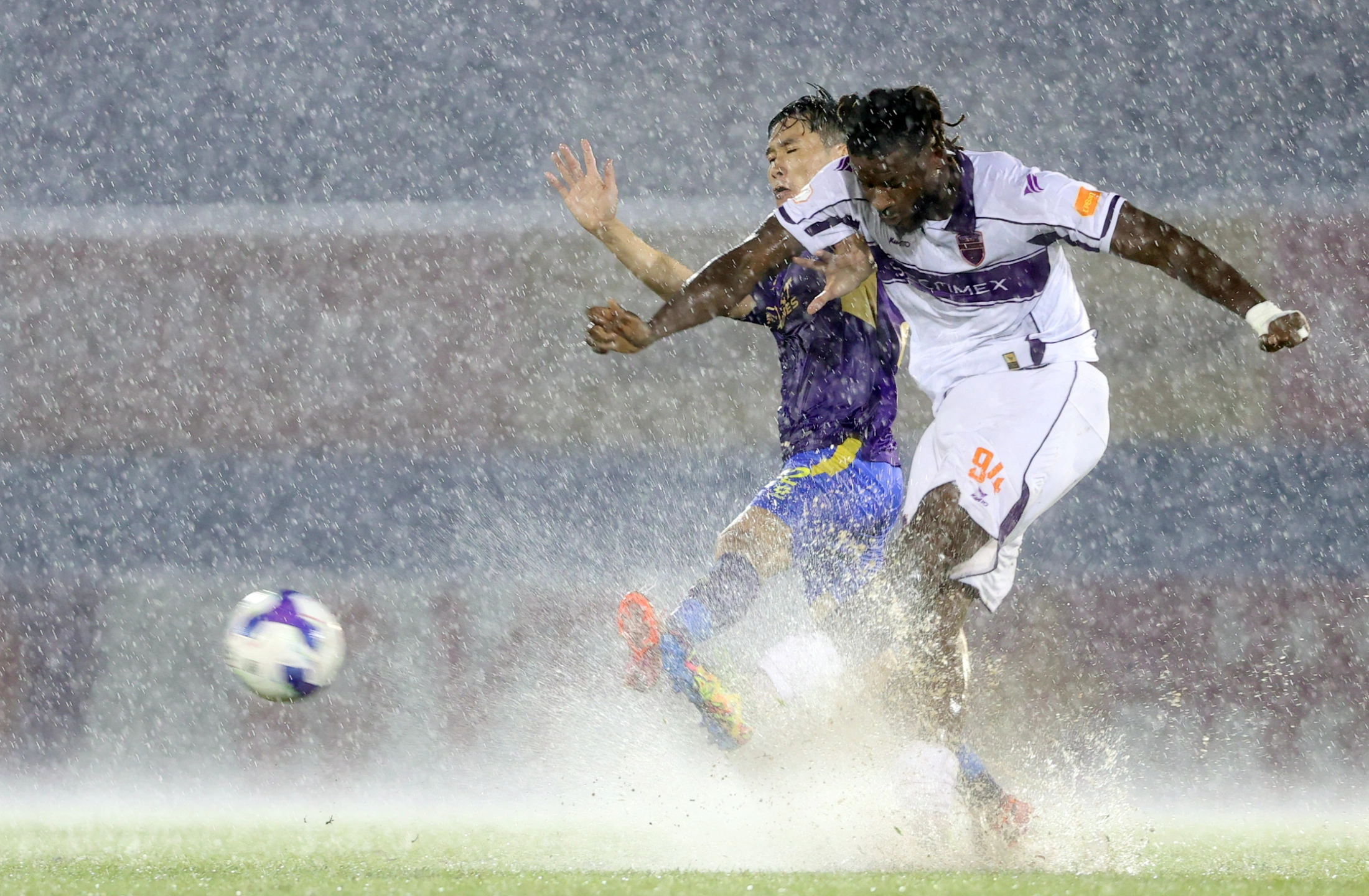 Mặt sân bị đọng nước khiến, cầu thủ không thể thi đấu như chiến thuật đề ra. HLV Hà Nội FC Harry Kewell thường xuyên phản ứng, góp ý để trọng tài dừng trận đấu.