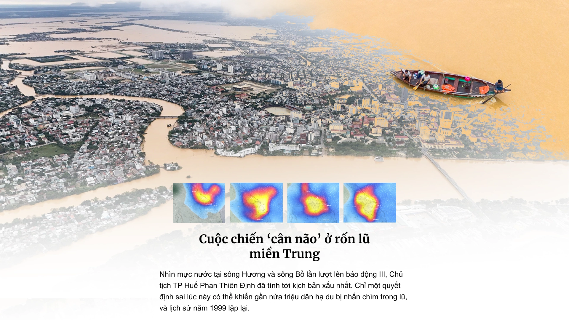Đêm đó, Chủ tịch TP Huế Phan Thiên Định cùng các cán bộ tại Ban Chỉ huy Phòng thủ dân sự gần như thức trắng, túc trực tại trụ sở Chi cục Thủy lợi và Biến đổi khí hậu để theo dõi diễn biến lũ. 6h sáng 27/10, mực nước sông Hương vượt báo động ba, một tiếng sau, sông Bồ cũng tương tự. Camera giám sát cho thấy ba hồ thủy điện ở thượng nguồn đều xả trắng xóa. Trong khi trên bản đồ dự báo khí tượng, dải mây dày từ Biển Đông tiếp tục kéo về phía Huế – Đà Nẵng.