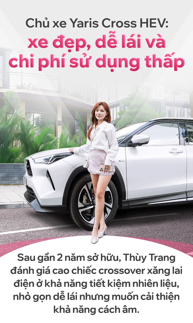 Nguyễn Thùy Trang (Hà Nội) là một trong những người dùng đầu tiên đặt mua Yaris Cross phiên bản HEV, ngay sau lễ ra mắt dòng xe hoàn toàn mới của Toyota Việt Nam ngày 19/9. Sau khoảng hai năm sử dụng, vị nữ chủ xe chia sẻ với VnExpress về quá trình gắn bó, ưu điểm cũng như điểm chưa hài lòng về mẫu crossover cỡ B của Toyota.